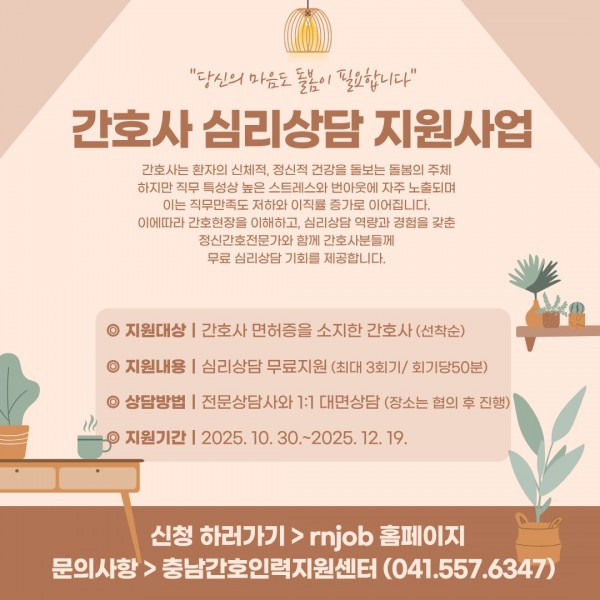 5. 지원내용: 심리 상담이 필요한 간호사에게 무료 심리 상담 3회기 지원